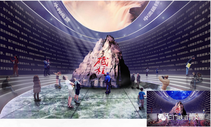 大型“中流砥柱”艺术造型装置+数字光影秀,“中流砥柱”是整个博物馆中心的“魂”,砥柱石上刻下先贤代表的名字,天幕的黄河之水悬挂天际屏和澎湃奔腾的激流为地幕屏,将黄河文化的渊博和水利先贤的精神以震撼的方式临摹,赋予博物馆生命和力量,大气、简洁庄重、磅礴。