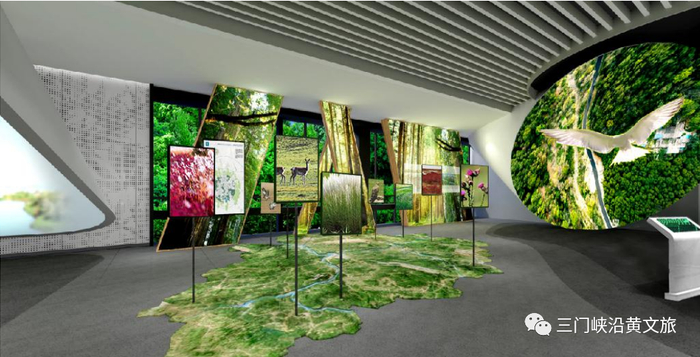 展板展面+数字交互屏。体感碗幕VR漫游生态长廊黄河两岸动植物分布、资源分布彰显了三门峡注重生态,与自然和谐可持续发展的理念。体感碗幕交互体验者可选择成为一种濒危或灭绝动物,游览黄河中下游,如“白鲟”“黄河鲤”,给予人以警示教育意义。