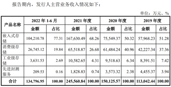 招股数据显示,公司除了嵌入式存储产品在2021年因售价提升40%叠加量增出现营收较大程度增长外,消费机存储、工业级存储业务2021年的营收基本与2020年持平,增长明显放缓,先进封测服务营收则是于2019-2021年出现连续下滑。