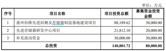 此前,公司计划募资额度为8亿元,其中3亿元用于惠州佰维先进封测及存储器制造基地建设项目,2亿元用于先进存储器研发中心项目,剩余3亿元补充流动资金。但按此次13.99元/股发行价格计算,佰维存储此次募集资金总额约为6.02亿元,扣除7937万元发行费用后,预计募资资金净额为5.23亿元,与预计募资额度还有较大差距。