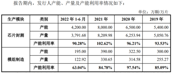 佰维存储拥有芯片封测和模组制造两个生产模块,其中芯片封测生产模块主要用于嵌入式存储产品的生产及对外提供封测服务,2022上半年的产能利用率降至了90.28%,是近年来的最低。同时,主要用于消费级存储和工业级存储生产的模组制造生产模块,其利用率更是连续下滑至了63.04%。