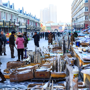 隆冬时节,位于黑龙江下游的佳木斯市抚远东极鱼市,又迎来了一年一度的卖鱼高峰期。“这批鲟鳇鱼今天下单,最迟明天就能‘飞’走!”在这个声名远扬的鱼类交易集散地,商户们忙着直播卖鱼,前来选购的本地市民也络绎不绝,伴随着人们口中呼出的阵阵哈气,零下20℃的市场显得格外热火朝天。