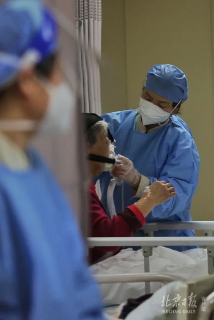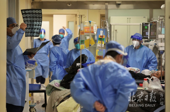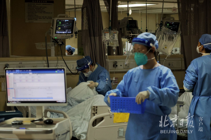 “12月26日,医院急诊和发热门诊共接诊患者1763人,比平时的接诊量高出数倍。15日至26日,急诊抢救留观共1042人次,18日至26日,发热病房住院共63人次,总计收治患者1632人次。”朝阳医院党委常委、副院长、急诊医学科主任郭树彬介绍,为了应对就诊高峰,该院成立工作专班,每日调度急诊和发热门诊的重症患者收治情况,12月15日起,依托呼吸、急诊、重症医学科、心血管、神经等专科优势,组建综合救治病区,收治急危重患者,疏解急诊压力;通过整合床位资源、重症监护病房改造、重症理论和实操培训等加强重症资源储备,提高医院重症患者的救治能力,降低病死率。截至26日,该院共开设了15个综合救治病区,开放538张床位,其中危重症监护床位69张,综合救治病区累计收治重症患者527人。