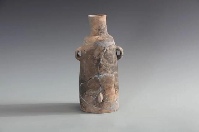 陶尖底瓶,新石器时代·马家浜文化,东山村遗址出土,张家港博物馆藏 尖底瓶主要出土于新石器时代仰韶文化半坡、庙底沟、西王村类型的遗址中,是仰韶文化最重要的代表性陶器之一。这件尖底瓶的造型、纹饰以及装饰和颜色,在长江下游地区未见源头,明显具有北方尖底瓶的风格,与西阴文化早期同类制品极度相似,对探讨黄河中游与长江下游的文化传播与交流提供了实物资料。