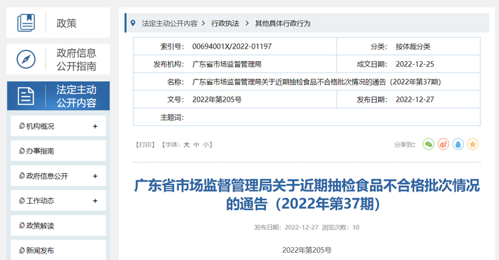 广东省市场监督管理局表示,欢迎广大消费者积极参与食品安全监督,关注食品安全抽检信息公布,如在市场上发现不合格食品,请及时拨打当地投诉举报电话12345或12315。