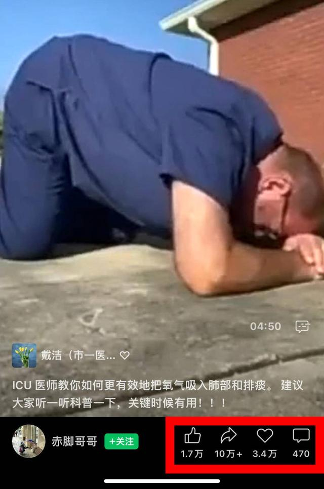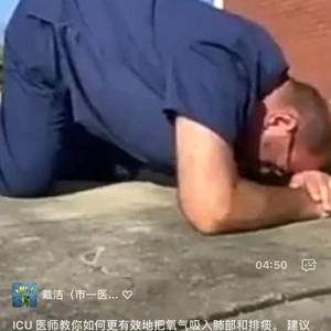 用手和膝盖支撑身体,交叉双臂,把头低下深呼吸并咳嗽……记者注意到,近日一条指导如何进行俯卧位通气的视频在网上热传。据介绍,通过这个姿势能有效地移动肺底部的胶黏物质、分泌物,有助于咳出分泌物。
