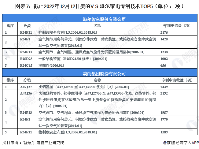 (5)专利技术构成对比:海尔布局F24F11,美的布局A47J27