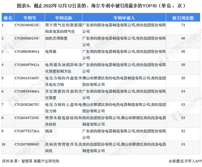 (6)被引用次数TOP10专利数量对比:美的独占前十