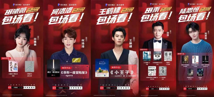 随后,活动吸引了知名艺人王鹤棣、田雨、田曦薇、何洛洛、陆思恒等;作家学者六神磊磊、严锋、饶雪漫、蒋胜男、蔡骏等32位来自各行各业的大咖助阵,根据自身的阅读经验和爱好,推荐百部经典作品,读者可在活动期内免费畅读。