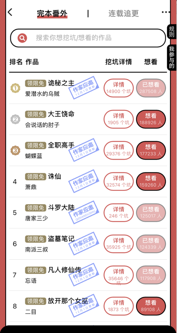 成立二十载,起点孵化的众多优秀作家作品已经深入读者记忆。以《全职高手》为例,尽管其已完结逾8年,仍有近20万书粉投票,“想看”再更新番外“填坑”,起点读书站内#网文填坑节#专属社区讨论量超百万。