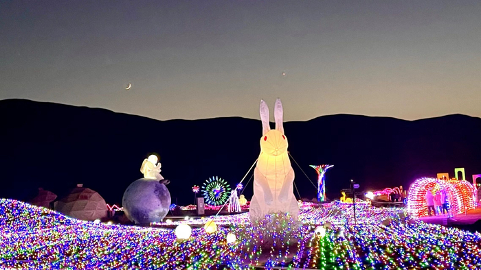 库木塔格沙漠的灯海。库木塔格沙漠风景名胜区管理委员会提供