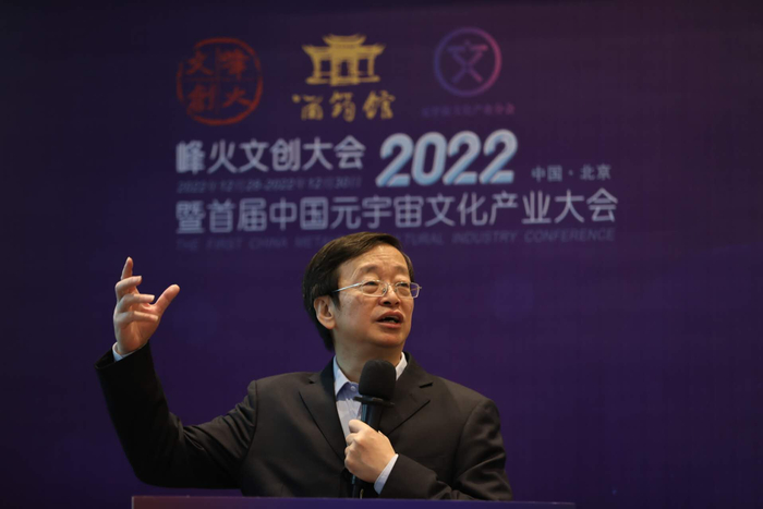 大会组委会主席、中国文化产业促进会副会长、北京大学文化产业研究院学术委员会主任陈少峰受邀以“元宇宙文化产业的机遇和挑战”为题,发表开场主题演讲。