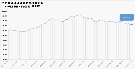 12月19日-25日中国原油综合进口到岸价格指数为143.57 环比下降1.09%
