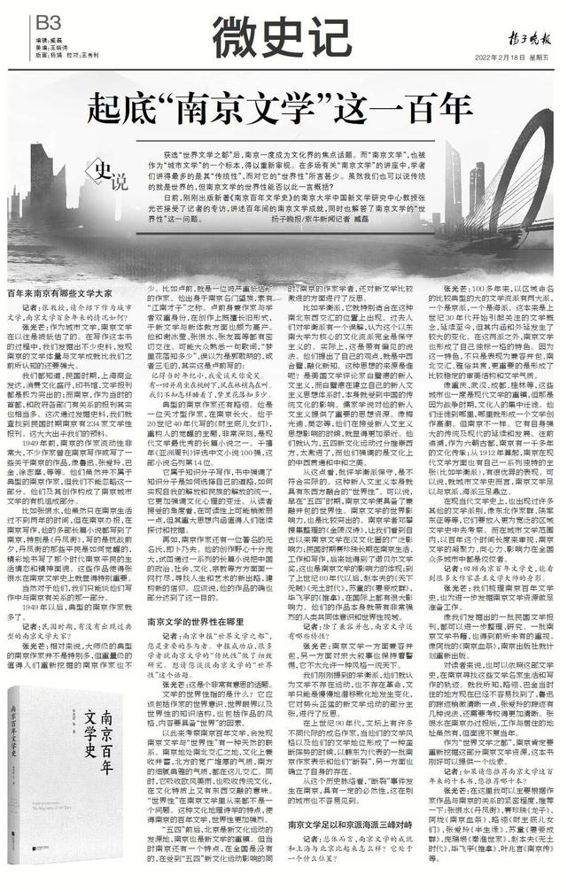 日前,刚刚出版新著《南京百年文学史》的南京大学中国新文学研究中心教授张光芒接受了记者的专访,讲述百年间的南京文学成就,同时也解答了南京文学的“世界性”这一问题。