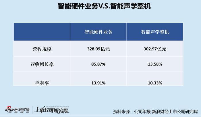 近年来,智能硬件业务业绩增速超出了智能声学业务,也跃升公司第一大业务板块。2021年,智能硬件业务营收为328.09亿元,同比增长85.87%,同期智能声学整机业务营收为302.97亿元,同比增长13.58%。除此之外,智能硬件业务毛利水平相对较高,智能硬件业务毛利率为13.91%,超出智能声学整机业务3.6个百分点。