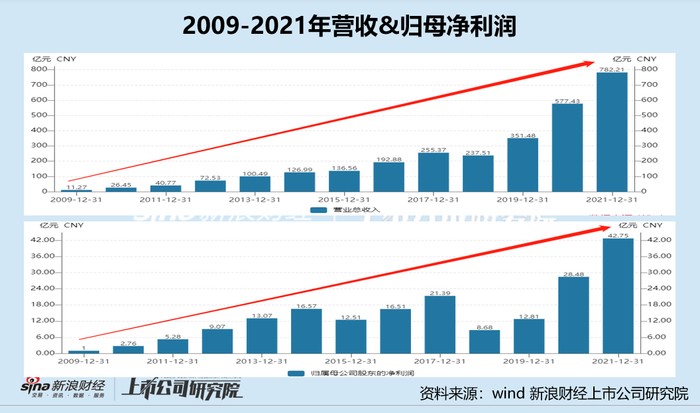 2009年至2021年,歌尔股份的营收总规模从11.27亿元增长至782.21亿元,归母净利润更是从1亿元增长至42.75亿元。公司业绩高增的背后,离不开公司大客户战略的实施。