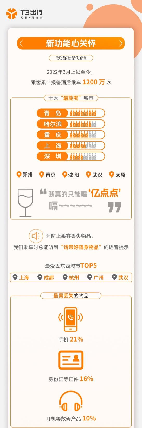 自上述服务从2022年3月上线至今,乘客累计报备酒后乘车约1200万次。《报告》指出,主要城市酒后报备率增长明显,其中青岛同比增幅达120%,哈尔滨、重庆两个城市增幅均超过100%。从整体数据看,一线、新一线城市增幅明显高于二三线城市。