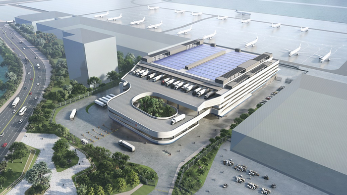 深圳机场南区国内转运库项目效果图。该项目是顺丰华南航空快件枢纽二期项目,建成后将由顺丰承租开展航空快件业务。(深圳机场供图)