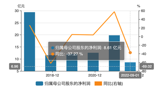 数据显示,今年前三季度,吉林银行营业收入由上年同期的82.58亿元降至79.27亿元,下降4%;归母净利润同比减少37.3%至8.61亿元。