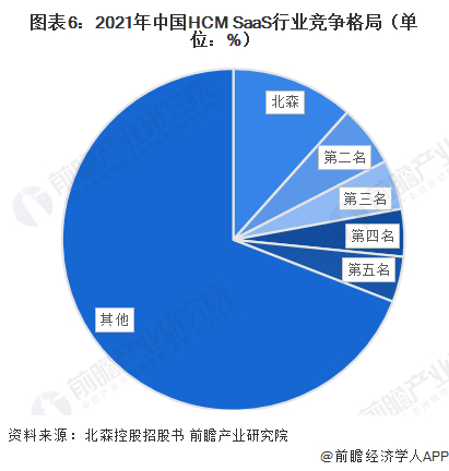 2021年北森依然是中国HCM SaaS(人力资本管理SaaS)市场最大供应商,并且连续6年位居榜首,2021年市场份额达11.6%,较2020年减少3.4%。行业内其他参与者主要包括肯耐珂萨、浪潮、SAP等。
