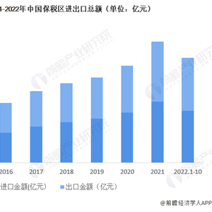 2022年1-10月,中国保税区进口总额和出口总额分别为33450.44亿元和34255.04亿元,进出口总额和贸易顺差分别为67705.48亿元和804.60亿元,出口总额超过进口总额。