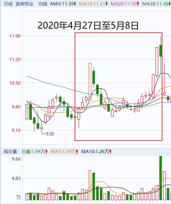 操纵“宜宾纸业”情况:2020年4月27日至5月8日,王宝元控制使用18个账户,集中资金优势连续买卖,影响“宜宾纸业”的交易价格和交易量,盈利7,589,845.14元。