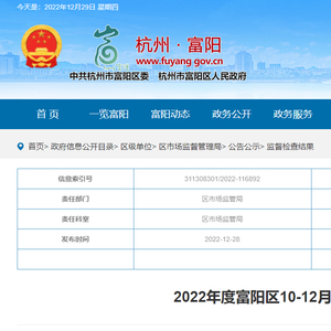 2022年度杭州市富阳区10月-12月药品抽检结果公示