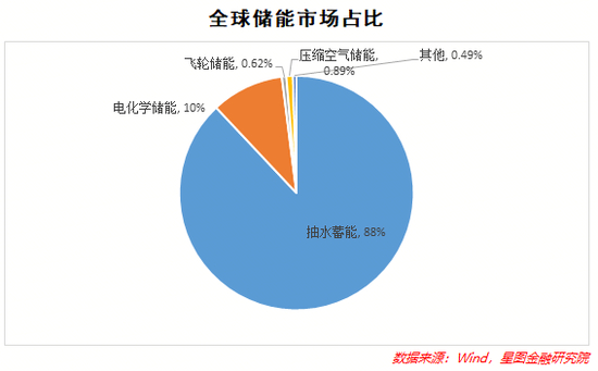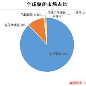 而对于储能而言,技术路线多样,每一条技术路线均对应一个完整的产业链,又对应着不同的应用场景,因此在投资中更具复杂性。以当前储能的技术路线来看,主要以抽水蓄能为主,截至2021年,全球储能市场装机量为205.3GW,抽水蓄能在全球的储能市场中占比约88%,其次为包括铅酸电池、锂电池、钠离子电池、全钒液流电池等在内的电化学储能,占比约10%。其余的压缩空气储能、飞轮储能、氢储能等储能方式占比较小,不足2%。