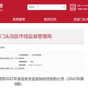 中国质量新闻网讯 2022年12月28日,北京市门头沟区市场监督管理局发布2022年食品安全监督抽检信息的公告(2022年第8期)。
