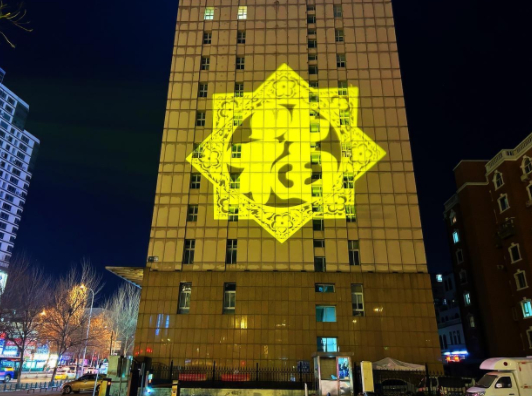采用全息技术,在写字楼墙体外侧通过投影形成高15米、宽15米的巨型“福”字,可以变化不同颜色和字体,为夜晚出行的市民提供精彩绝伦的光影体验。