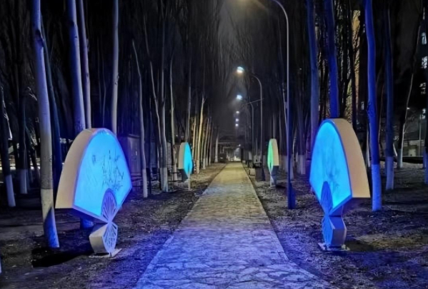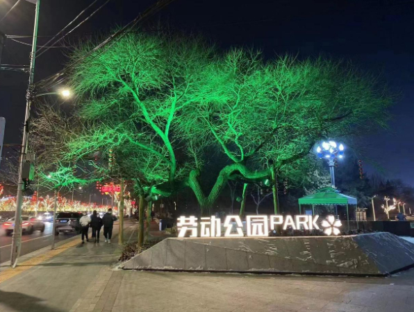 宁山园、辽河园、将军园、共青园、博雅园等区域通过鸟巢灯、双栖灯、投光灯等,打造沿河绿植、河岸灯光效果。安装“繁华似锦”“盛世花开”“福鹿吉祥”“文化长廊”“星光灿烂”等主题灯光小品,形成夜游公园体系。