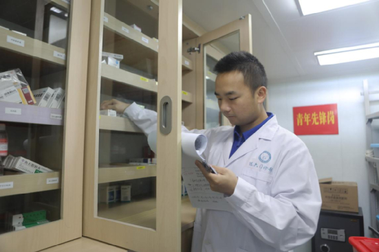 医务工作者进行巡检药品准备(摄影:王宁)