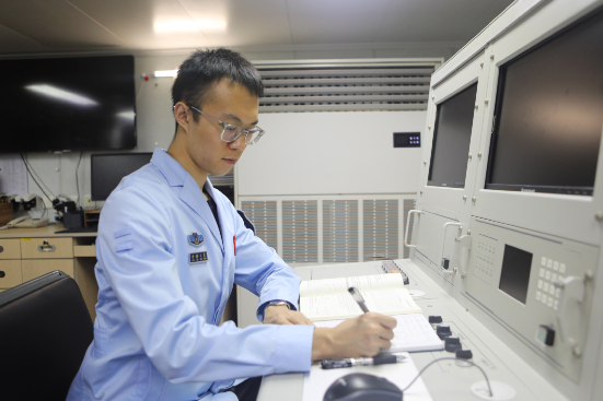 “横摇、纵摇、艏摇,远望号的每一个摆动都影响到雷达对目标的捕获,船姿岗位责任重大。”为了尽快提高自身业务技能,今年刚到远望号船的新船员陈浩只能利用琐碎休息时间加班学习。为了提高学习效率,他把参数从哪里来到哪里去统统写在那块“小白板”上,写了擦,擦了写,日积月累“小白板”也慢慢变成“小黑板”。