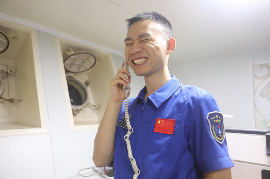 船员们与家人通信时分外开怀(摄影:张联青)