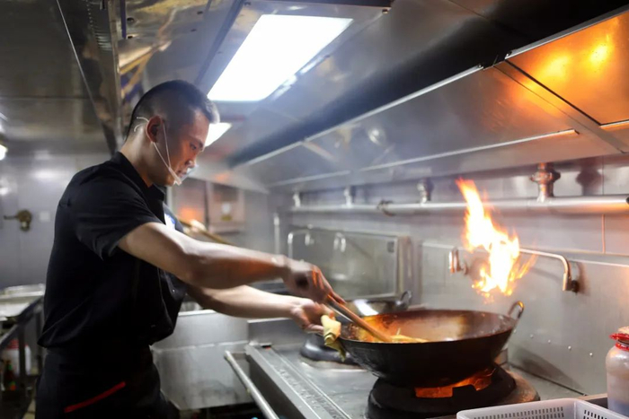 今天夜餐的主食是蛋炒饭,厨师安丰强在放盐的时候格外小心。他说,夜深了,吃点清淡的对身体好,所以放盐要比平时少一些,最好只点一点蚝油调味。