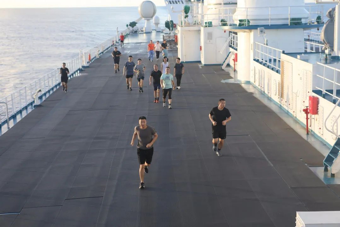 船员们在甲板进行运动(摄影:张联青)