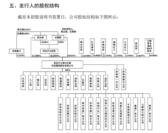 郭志强、任燕燕夫妻为发行人实际控制人。截至本招股说明书签署日,两人合计直接持有发行人 11.97%股权,通过世纪开元投资合计间接控制发行人36.64%股权,郭志强通过控制员工持股平台济南集川实际控制发行人 7.34%的股权。二人合计控制发行人 55.95%的股权。