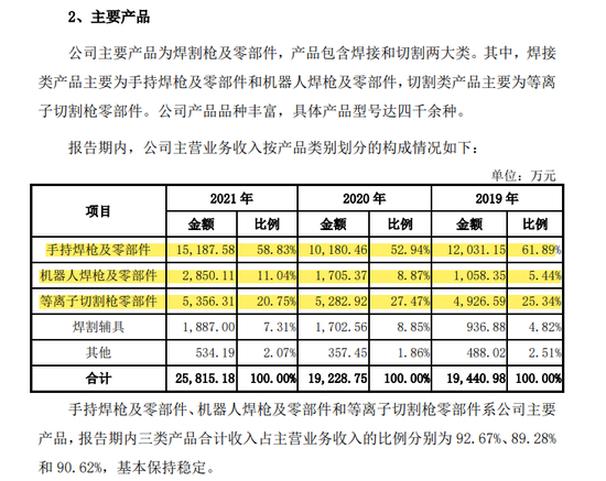 公司主营业务为焊接与切割设备零部件的研发、生产和销售,主要产品为焊割枪及零部件。