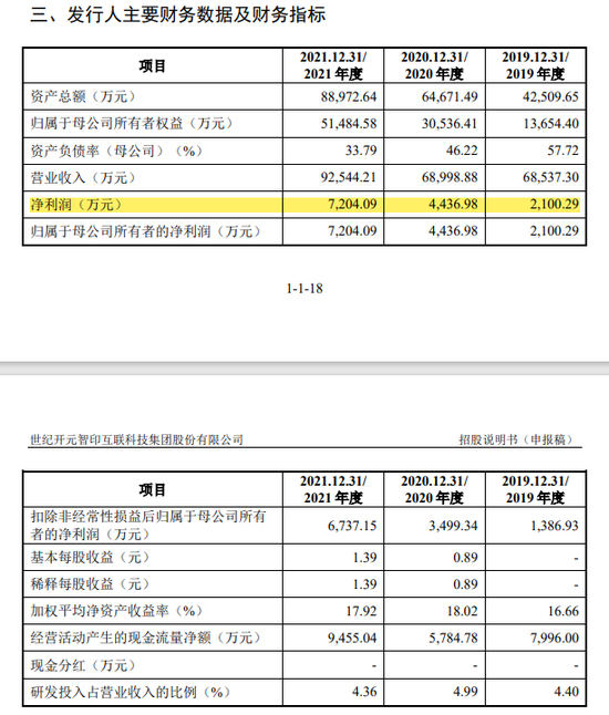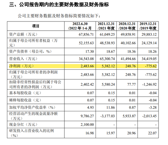 2020 年度和 2021 年度,公司归属于母公司股东的净利润分别为 4,436.98 万元和 7,204.09 万元,扣除非经常性损益后归属于母公司股东的净利润分别为3,499.34 万元和 6,737.15 万元,最近两年扣除非经常性损益前后孰低的归属于母公司股东的净利润均为正值且累计达 10,236.49 万元。