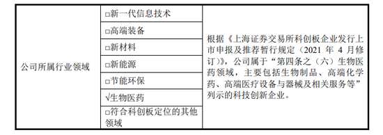 公司所处行业符合《上海证券交易所科创板企业发行上市申报及推荐暂行规定(2021 年 4 月修订)》中“生物医药”中的“高端医疗设备与器械及相关服务”的要求。