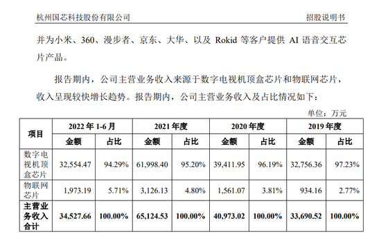公司系专注于数字电视和物联网应用领域芯片设计与系统方案开发的芯片设计企业,通过 20 余年在数字通信、音视频及人工智能领域的芯片设计经验积累,为数字电视领域及工业控制、智能语音等物联网领域提供芯片、算法和软件一体的完整解决方案。公司目前有数字电视机顶盒芯片和物联网芯片两条业务线。其中,物联网芯片包括电子雷管主控芯片和 AI 语音交互芯片。数字电视机顶盒芯片主要应用于数字电视接收终端的机顶盒;电子雷管主控芯片主要应用于民爆领域的电子雷管;AI 语音交互芯片主要应用于智能家电家居、智能可穿戴及智能车载等终端产品。