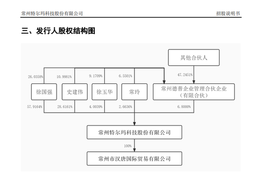 截至本招股说明书签署日,发行人的控股股东为徐国强,直接持有发行人57.92%的股份。发行人的实际控制人为徐国强及其一致行动人,包括徐国强、史建伟、徐玉华和常玲,其中徐国强和常玲系夫妇关系,史建伟和徐玉华系夫妇关系,徐国强和徐玉华系姐弟关系。史建伟、徐玉华、常玲分别直接持有发行人28.62%、4.00%和 2.66%的股份。同时,徐国强、史建伟系常州德普的普通合伙人、执行事务合伙人,通过常州德普控制发行人 6.80%的股份。上述 4 人通过直接和间接的方式合计控制公司 100%的股份。