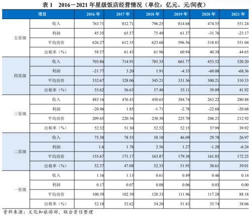 从各星级饭店情况看,五星级和四星级饭店各项指标下滑严重,五星级饭店作为最主要的利润来源,2020年以来持续亏损,2021年亏损面有所收窄;四星级酒店则亏损面不断扩大。