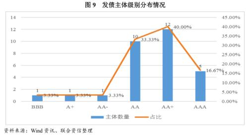 截至2022年12月20日,主体信用等级有效的旅游行业存续债发行人共30家,包含AAA级别发行人5家,AA+级别发行人12家,AA级别发行人10家,AA-级别发行人1家,A+级别发行人1家,BBB级别发行人1家。下文分析均基于此样本。