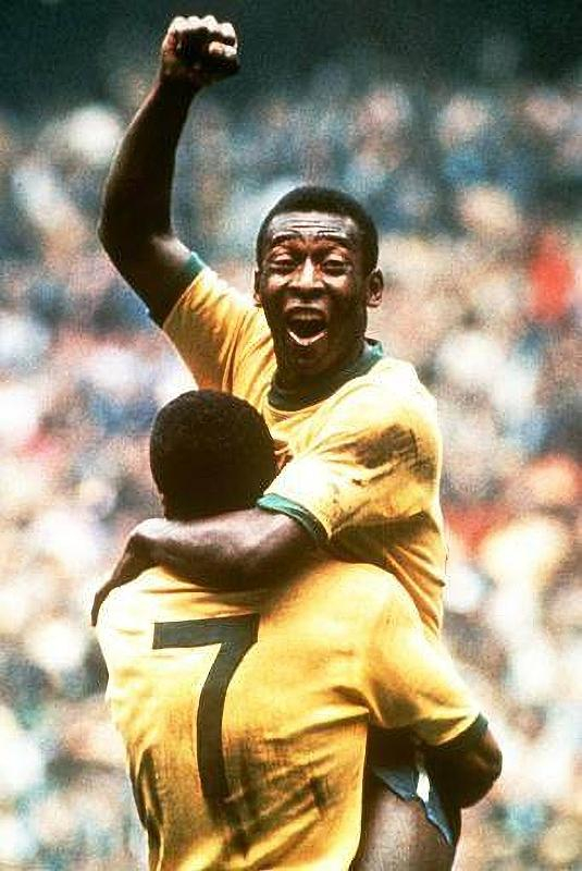 贝利在1970年世界杯庆祝夺冠,这应该是他最著名的照片之一