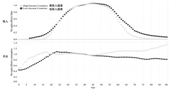 世界银行曾在研究报告中发布过一张统计曲线图,真正的“人生收支曲线”并没有随年龄增长如期大幅走低,相反,对于高收入国家组,消费支出一生持续走高,临近生命尽头支出甚至还出现了陡升。