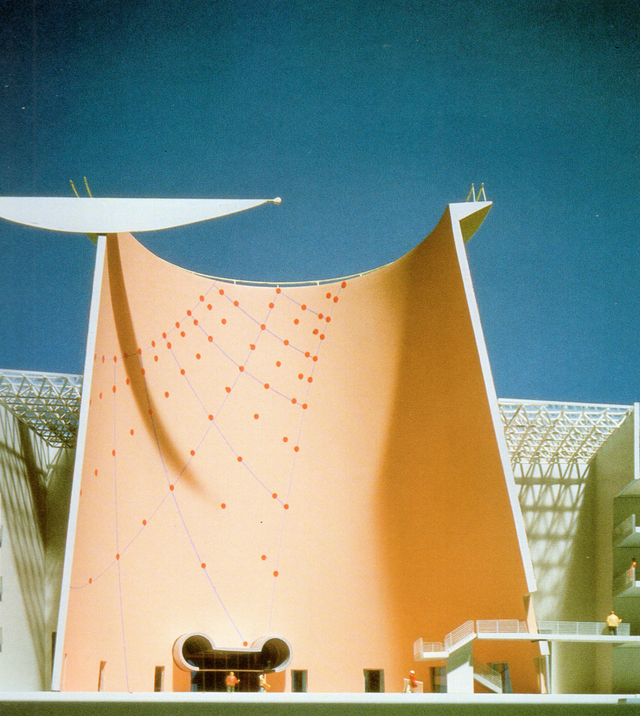 这个根,他该如何表现出来?日本(比如广岛)经历的悲惨核爆给矶崎新带来了很大的冲击,那些记忆又成为他生活中另一个层面的体验。他的记忆层面分为多层,中国的文明、广岛的悲惨历史、欧美的文化影响……在这样重层的记忆中他逐渐步入工作阶段,灵感的迸发、创意的来源已然不是简简单单的心境供给,而是一个影响因素多元、更为复杂的心理构造。