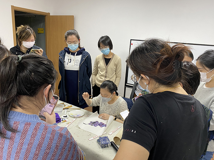 选择了嘉定非遗•药斑布工艺品课程的学员“深感选课选对了”,“柳老师授课专业又耐心,把药斑布的历史背景知识,文化传承意义和技术要点都讲得很透彻,展现出传承人的风范和非遗文化传播的意义。”