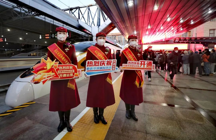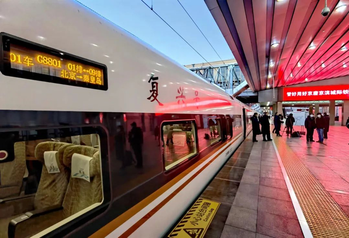列车长冯华介绍,这趟列车从唐山站、燕郊站上车的旅客较多,其中唐山站上车131人、燕郊站上车101人,从燕郊站到达北京站只需半小时。“开通运营后,京唐京滨铁路还将迎来首个春运,我们已经做好充分准备!”冯华说。