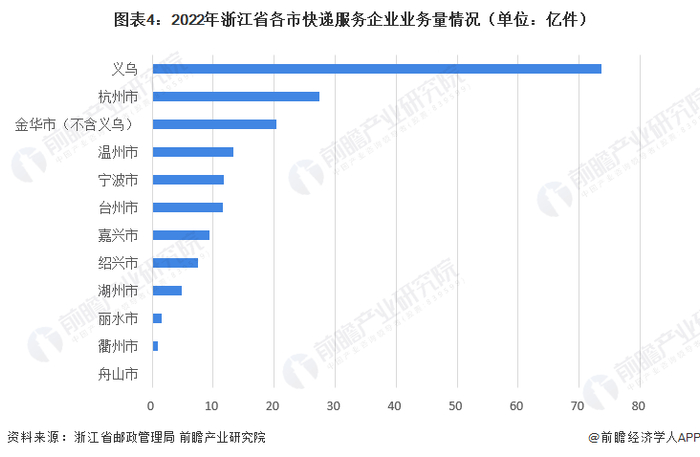浙江省快递业务中义乌市快递业务量最大、杭州市快递业务收入最高